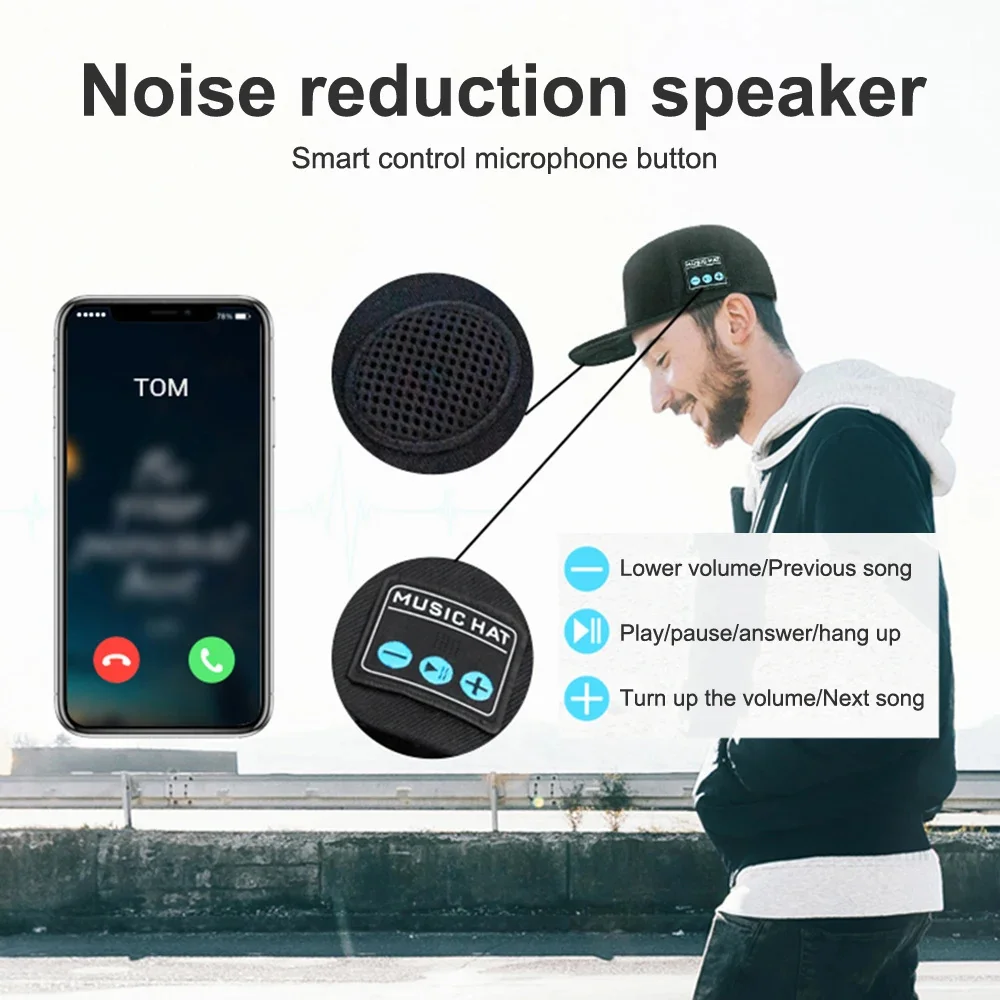 Music Hat Wireless Bluetooth Speaker Hat Baseball Cap & Headphones Supports Volume Control Motion Music Hedset With Microphone